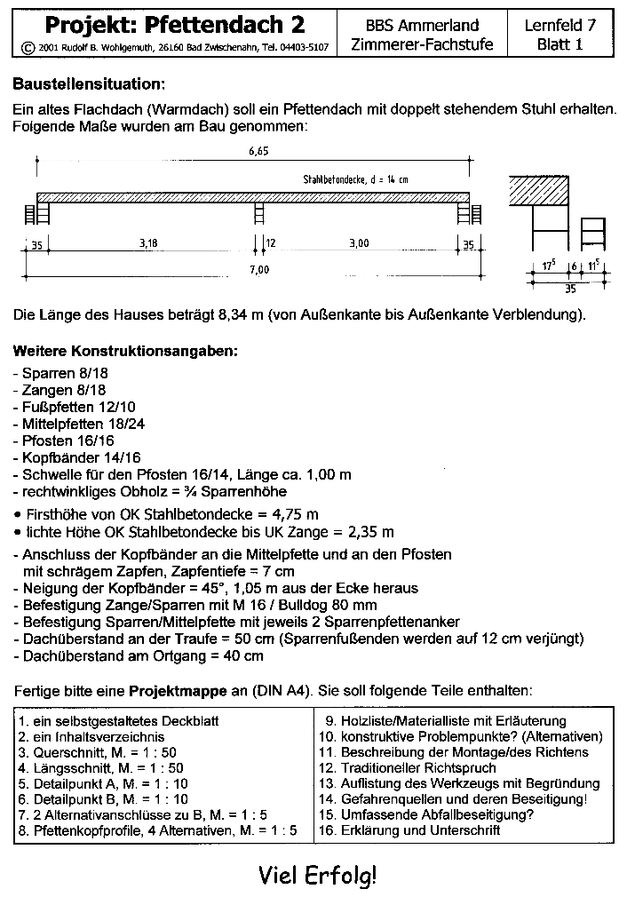 Lernfeld-Gestaltung - Zimmerer Fachstufe I - Aufgabenstellung für das Lernfeld 7 |