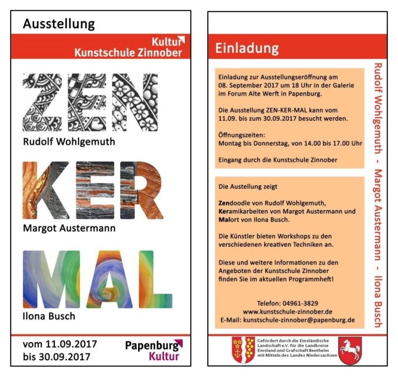 vom 11.09. bis 30.09.2017, Mo. bis Do. 14:00 bis 17:00 Uhr